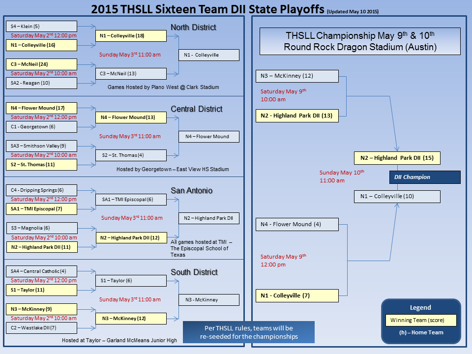 | 04/27 | Flower Mound vs Frisco | District Playoffs | Flower Mound | 12-11 |