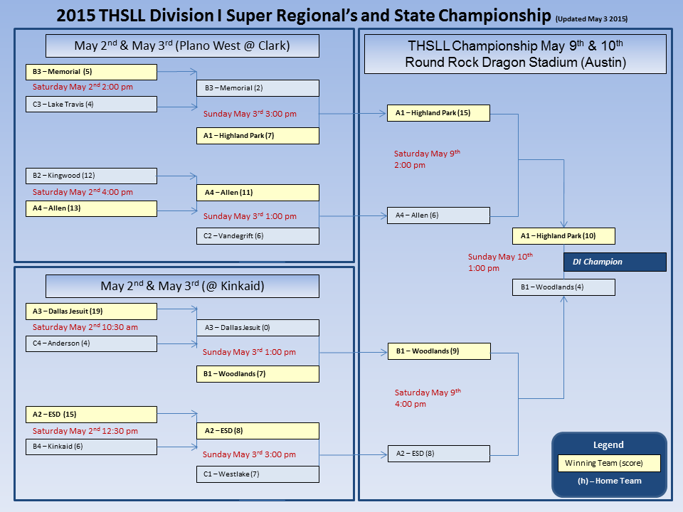 | 05/03 | Memorial vs Highland Park | DI Super Regionals | Highland Park | 2-7 |